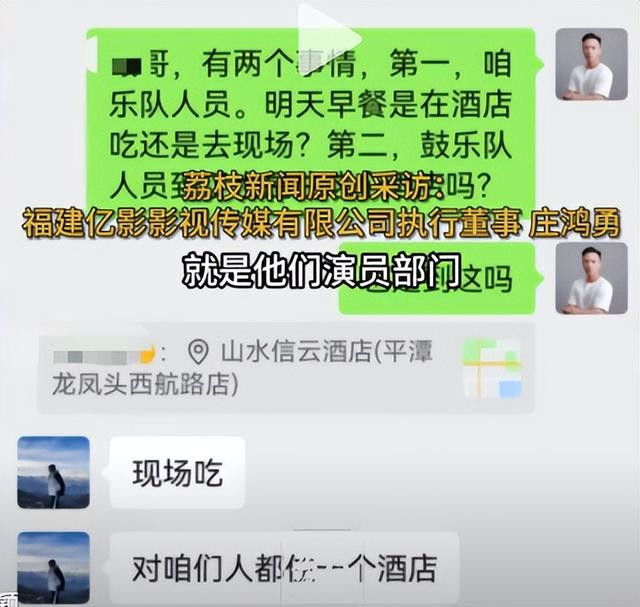 据被欠薪的福建意影影视传媒有限公司执行董事庄洪勇透露,当时是剧组管理演员的这个副导演加了自己的联系方式,通过微信跟他们进行合作的,而他们公司就是专业的给剧组提供这些舞龙舞狮,锣鼓管乐的。