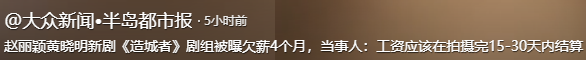 大众新闻半岛都市报.2025年4月23日 赵丽颖黄晓明新剧《造城者》剧组被曝欠薪4个月,当事人:工资应该在拍摄完15-30天内结算