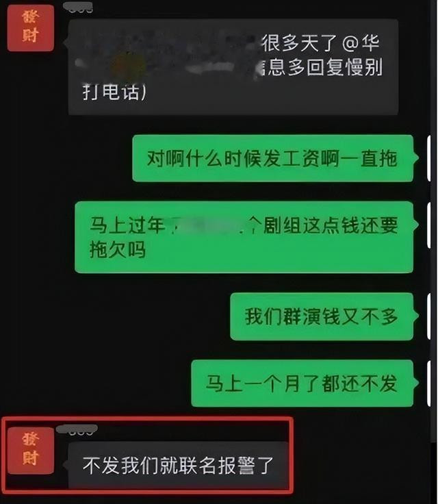 除此之外,还有剧组工作的其他工作人员因为欠薪的问题,直接将剧组曝光到互联网上,进行讨薪,甚至有群演更是在讨薪时声称剧组若再不发薪就要报警。